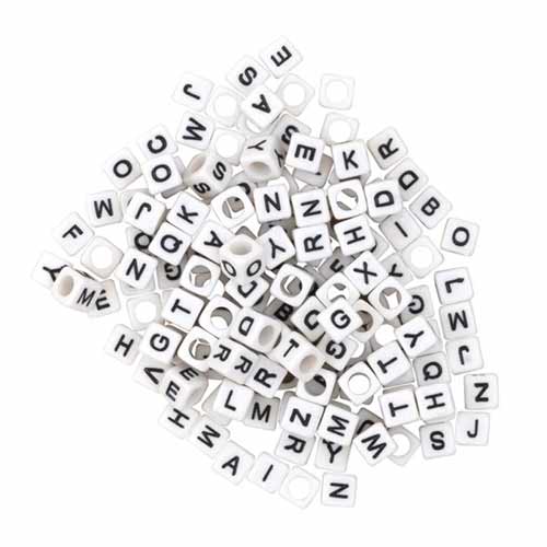 Creativity Street® Black and White Alphabet Beads are 6mm and have a cubic shape.