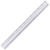 Durable 12″ plastic rulers feature double beveled edge with pencil groove. Raised calibrations show 1/16 inches on one edge, millimeters on the other. Holes allow for storage in ring binders. Clear plastic or assorted colors are available. Rulers are sold individually. Available in a various colors.
