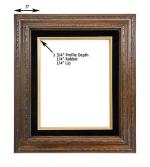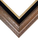 Walnut Stain wooden frame with black velvet liner inter gold lip. Measures 3″ wide and fits 4″ x 5″ media. Best suited for stretched canvas.