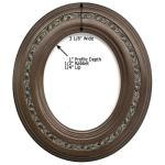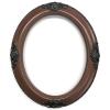 Walnut wood textured composite oval frame with dark floral acorn inlay. Measures 8″ x 10″. Suitable for artwork or mirrors. Glass not included.