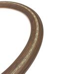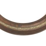 Walnut textured composite oval frame with gold painted floral acorn inlay. Measures 22″ x 28″. Suitable for artwork or mirrors. Glass not included.
