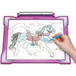 The Light-Up Tracing Pad – in Pink, Blue, or Teal lets kids trace and color detailed scenes. The ultra-thin tablet design and bright LED drawing surface make tracing easy. Start tracing right away with the content inside, then download additional tracing packs online. Paper-locking frame holds sheet in place to keep crisp tracing lines. The usable package converts into a shadow-box to trace in bright rooms and can also be used as a carry case for tracer and supplies!