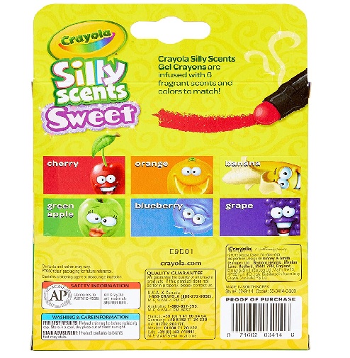 Silly Crayola Fragrance Crayons: 6 gel crayons in bold, vibrant colors with sweet smelling scents to match.