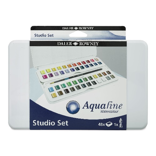 Daler-Rowney Aquafine Watercolor Half Pan Sets are brilliant, transparent, and free-flowing. Compact and portable for plein air and travel. Expertly made in the UK with finely milled pigments, colors dissolve smoothly for delicate washes and offer excellent tinting strength and lightfastness . Perfect for students, hobbyists, and outdoor painters, these affordable sets are easy to store and transport. Choose from a range of themes to suit your painting style.