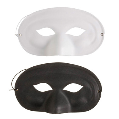 Fun foam costume masks that come in black and white. These are great bases for the creative crafter to decorate with feathers, silk flowers, stickers, gems, glittler, and more. Package contains 1 black or white mask.