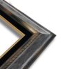 Gold toned wood frame with brown brushed antiquing and black velvet liner. Measures 3″ wide and fits 10″ x 20″ media. Best suited for stretched canvas.