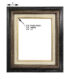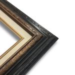 Walnut Gold wood frame with golden accent border, gold inner border, and linen liner. Measures 3″ wide and fits 4″ x 5″ media. Best suited for stretched canvas.