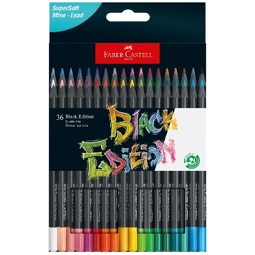 36 Black Edition Colored Pencils made with sleek black wood have a wonderfully smooth and vibrant color laydown, thanks to their super soft lead. The high pigmentation of the lead makes them versatile – ideal for drawing techniques on light, colored and dark paper.