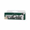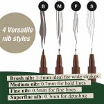 Contents Include: 4 Pens #175 Dark Sepia Nibs: Superfine (0.3mm), Fine (0.5mm), Medium (0.7mm) and Brush in a recycled plastic wallet