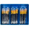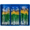 Royal Brush Box Assortment with 72 gold taklon Soft-Grips including 12 each of sizes 3, 6, 10 round; sizes 8, 10 shader; and size 3/4″ glaze wash. Tray Assortments are economical and let you choose from the six sets as desired. Durable brushes are perfect for all mediums. Sold as 72 per pack.