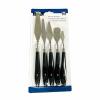 Complete your art kit with the Royal & Langnickel palette knife. This artist palette knife features a hardwood handle, nickel-plated stainless steel blade, and solid brass ferrule. With a ground and tempered steel blade, this knife provides superior flexibility. You can use this versatile tool for applying paint, removing paint, or mixing colors.