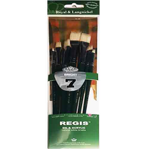 Regis™ white bristle brushes are constructed with naturally curved, interlocked bristles for exceptional performance. These brushes are strong, hold generous amounts of paint, and have surprising resiliency, even under vigorous workings. These must-have brushes work best with oil and tube acrylics. Artists and students love the combination of quality and value these brushes offer.
