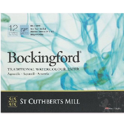 St Cuthbert’s Bockingford Watercolor Glue Bound Pads feature 12 sheets of beautifully textured, high-quality watercolor paper made to archival standards. Acid-free and internally sized for enhanced durability, these 140 lb (300 gsm) papers are traditionally crafted on a cylinder mould at historic St. Cuthbert’s Mill in the southwest of England. Their distinctive, randomly textured surface is achieved through the incorporation of natural woolen felts. Ideal for a range of watercolor techniques, this extremely forgiving paper is a favorite of professionals and hobbyists worldwide. Pads are wire bound on the short edge.