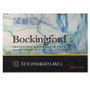 St Cuthbert’s Bockingford Watercolor Glue Bound Pads feature 12 sheets of beautifully textured, high-quality watercolor paper made to archival standards. Acid-free and internally sized for enhanced durability, these 140 lb (300 gsm) papers are traditionally crafted on a cylinder mould at historic St. Cuthbert’s Mill in the southwest of England. Their distinctive, randomly textured surface is achieved through the incorporation of natural woolen felts. Ideal for a range of watercolor techniques, this extremely forgiving paper is a favorite of professionals and hobbyists worldwide. Pads are wire bound on the short edge.