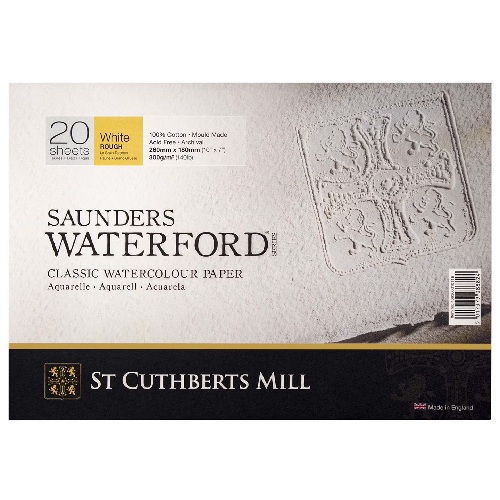 Saunders Waterford is an exquisite watercolor paper, traditionally made on a cylinder mold machine. This is the superior quality watercolor paper made by St Cuthberts Mill and comes with the Royal Watercolor Society’s endorsement. Made using 100% cotton, the highest quality papermaking material, to high archival standards. Each sheet is buffered with calcium carbonate to help defend finished pieces of work from discoloration caused by acids present in atmospheric pollution.