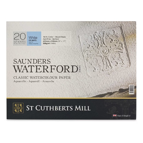 Saunders Waterford is an exquisite watercolor paper, traditionally made on a cylinder mold machine. This is the superior quality watercolor paper made by St Cuthberts Mill and comes with the Royal Watercolor Society’s endorsement. Made using 100% cotton, the highest quality papermaking material, to high archival standards. Each sheet is buffered with calcium carbonate to help defend finished pieces of work from discoloration caused by acids present in atmospheric pollution.