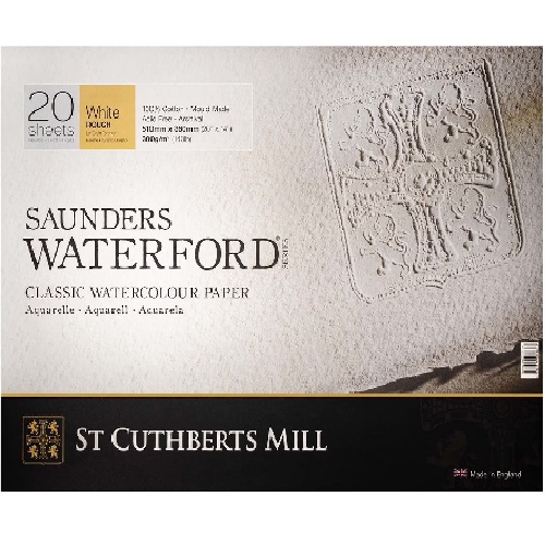 Saunders Waterford is an exquisite watercolor paper, traditionally made on a cylinder mold machine. This is the superior quality watercolor paper made by St Cuthberts Mill and comes with the Royal Watercolor Society’s endorsement. Made using 100% cotton, the highest quality papermaking material, to high archival standards. Each sheet is buffered with calcium carbonate to help defend finished pieces of work from discoloration caused by acids present in atmospheric pollution.