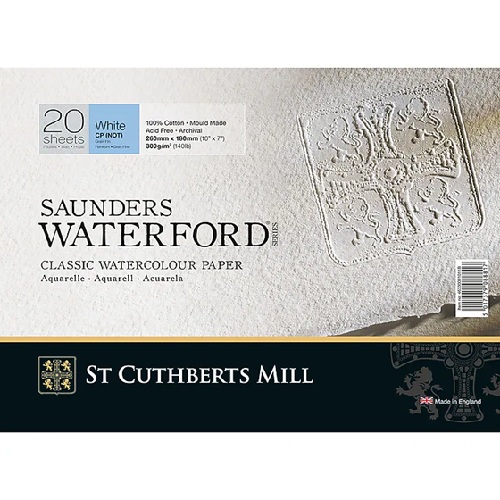 Saunders Waterford is an exquisite watercolor paper, traditionally made on a cylinder mold machine. This is the superior quality watercolor paper made by St Cuthberts Mill and comes with the Royal Watercolor Society’s endorsement. Made using 100% cotton, the highest quality papermaking material, to high archival standards. Each sheet is buffered with calcium carbonate to help defend finished pieces of work from discoloration caused by acids present in atmospheric pollution.