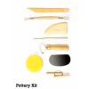 This set contains four blades for slicing clay and creating a variety of design edges or cuts. Safety handles that snap off for use on all blades are also included. This package contains two safety handles and four metal blades