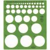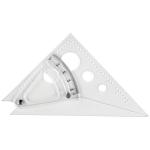 transparent triangle permits tracing of angles from zero to 90 degrees. Innergraduations on arc give degrees of one angle while the outer row of fuigers gives the degrees of the complimentary angle. Circular openings are 1/4″, 1/2″,3/4″ and 1″.